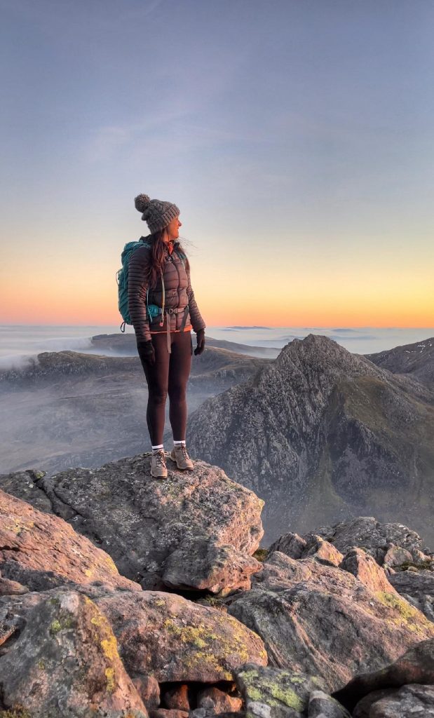 Giving back and lifting others was a very strong theme amongst many of the stories as Sophie and Jenn have already shared and Emily does below. Lisa Wells, 56, from North Wales works as a freelance Mountain Leader combining her love of the outdoors with supporting others, creating a safe, supportive space for women to connect, build confidence and enjoy the outdoors together. She is also an Ambassador for the Eyri National Park, a volunteer on the Caru Eyri scheme, trustee for the Snowdonia Slate Trail and works on an ad hoc basis for the NHS. Her new lifestyle gives her the variety she likes and a sense of giving back to the community.