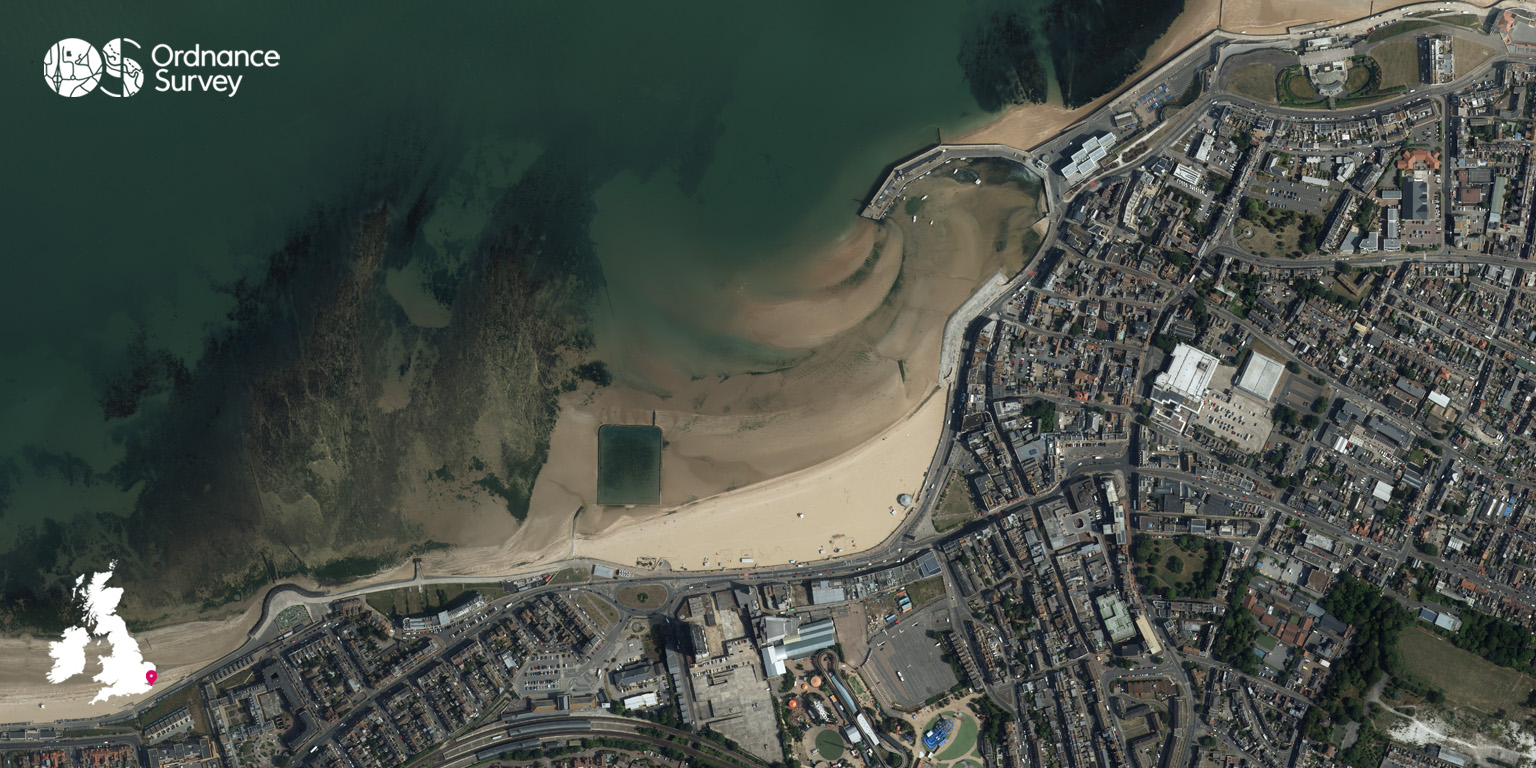This imagery of Margate was captured by the OS Flying Unit, which plays a vital role in providing imagery to create many of Ordnance Survey’s products and datasets.